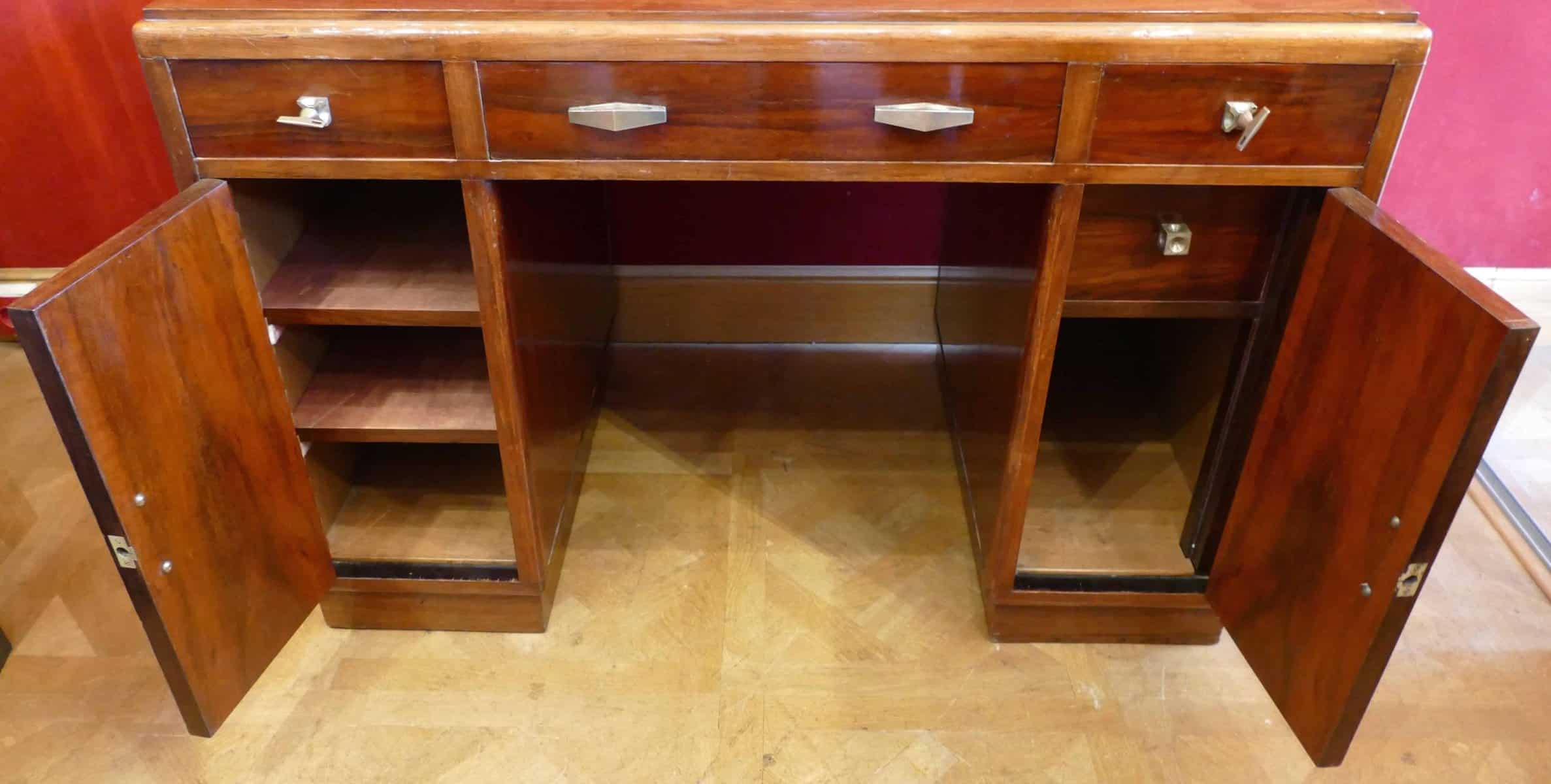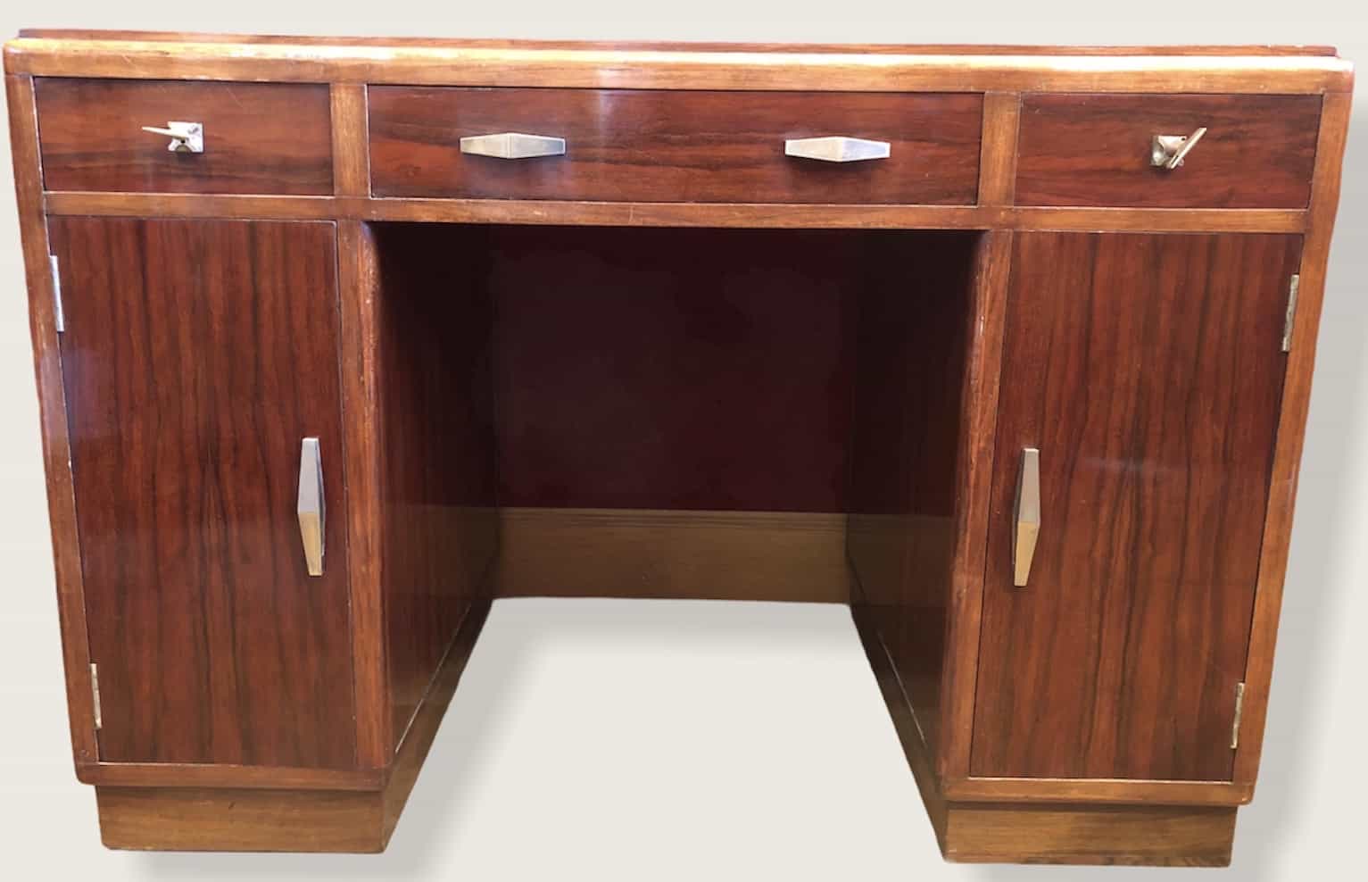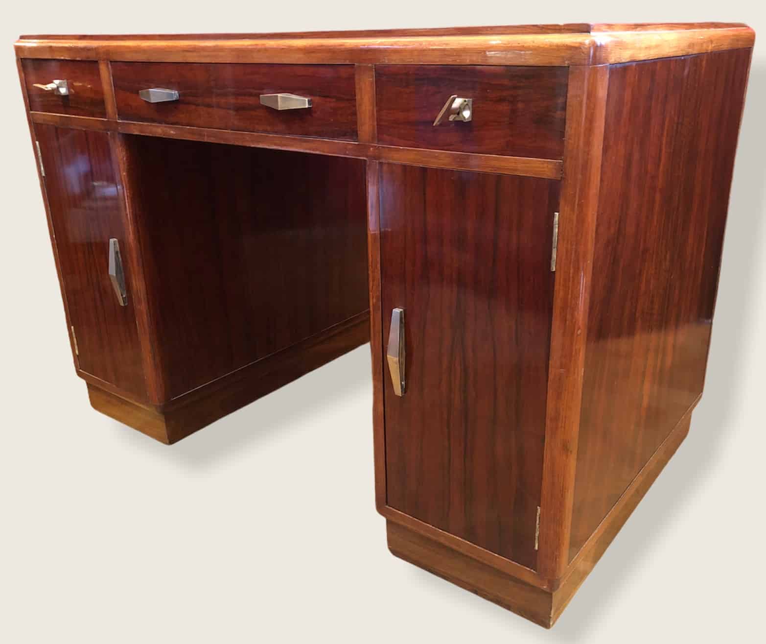Bureau Art Déco à deux caissons en palissandre ouvrant par deux portes, trois tiroirs en façade.