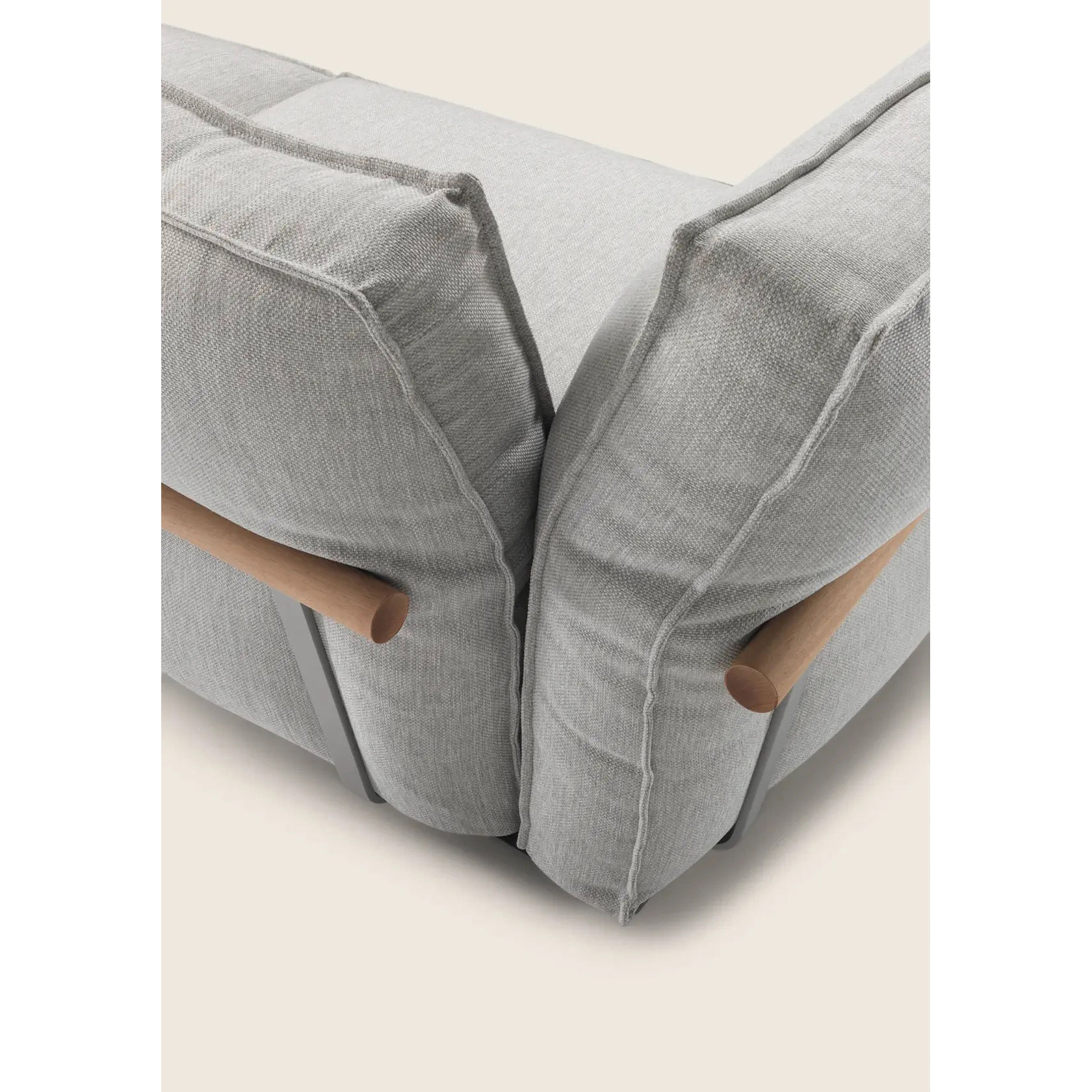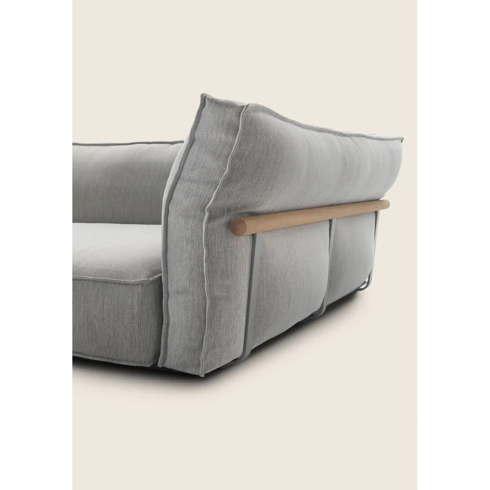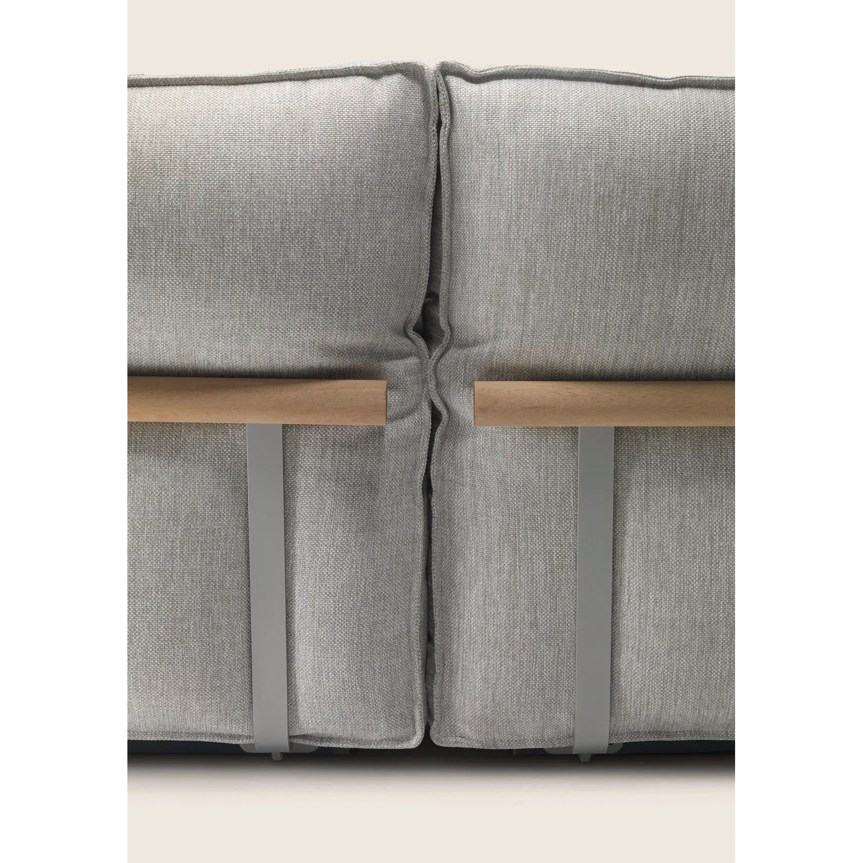 Le canapé d’extérieur Camelot incarne un design modulable sophistiqué, alliant grand confort et esthétisme. Inspiré du système d’assises indoor du même nom, il joue sur les contrastes visuels : la rigueur de sa structure en acier inoxydable, rehaussée de poteaux cylindriques en bois d’iroko, dialogue avec la douceur enveloppante de ses coussins généreusement rembourrés. Ces derniers sont habillés d’un tissu technique imperméable et respirant, garantissant à la fois durabilité et performance optimale en extérieur.