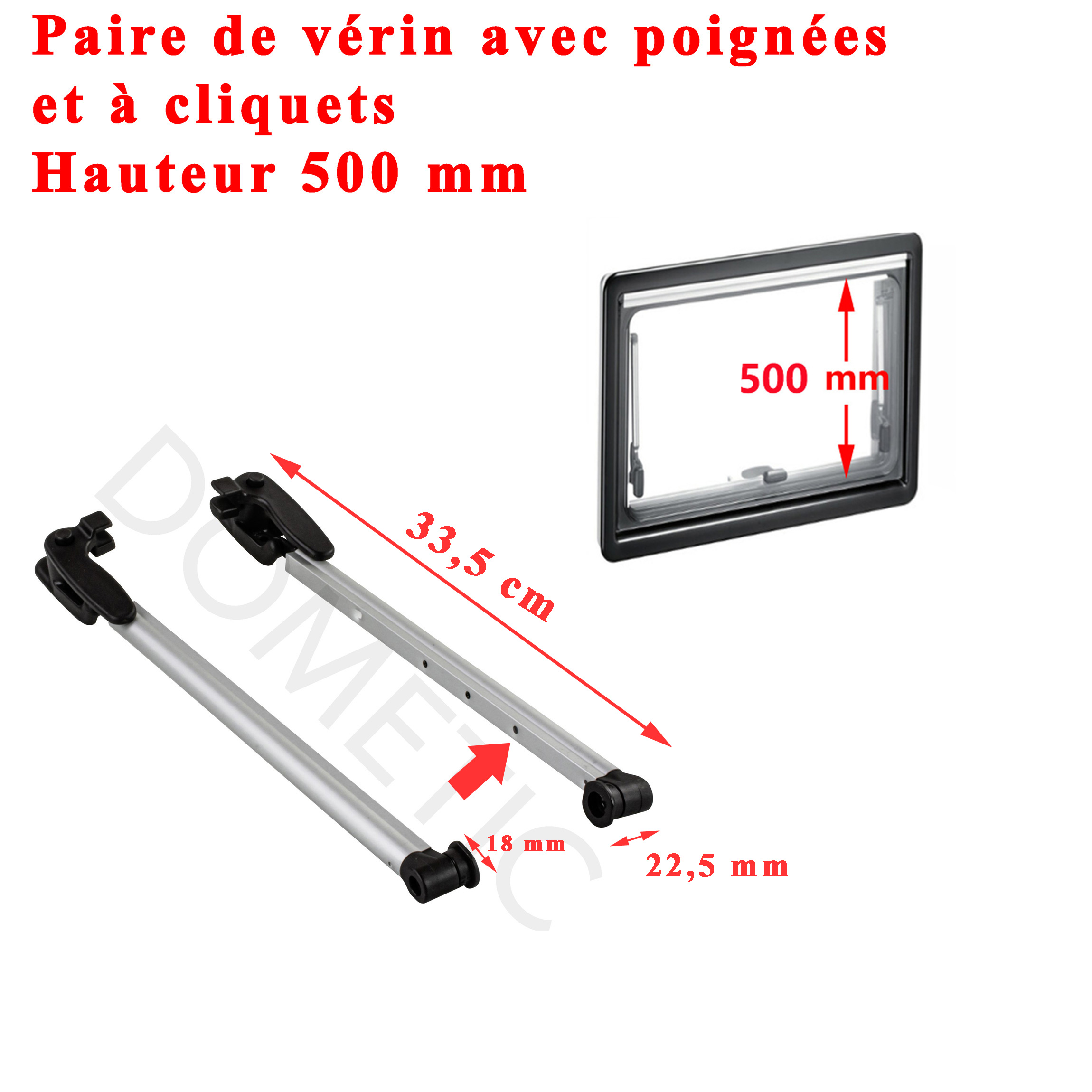 Dometic seitz, paire de vérin avec poignées et à cliquets ou compas pour les baies de hauteur 500 mm ou 50 cm