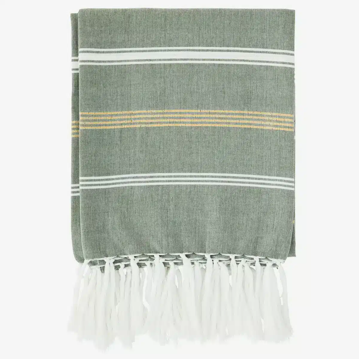 Fouta Rayée Vert Blanc Doré