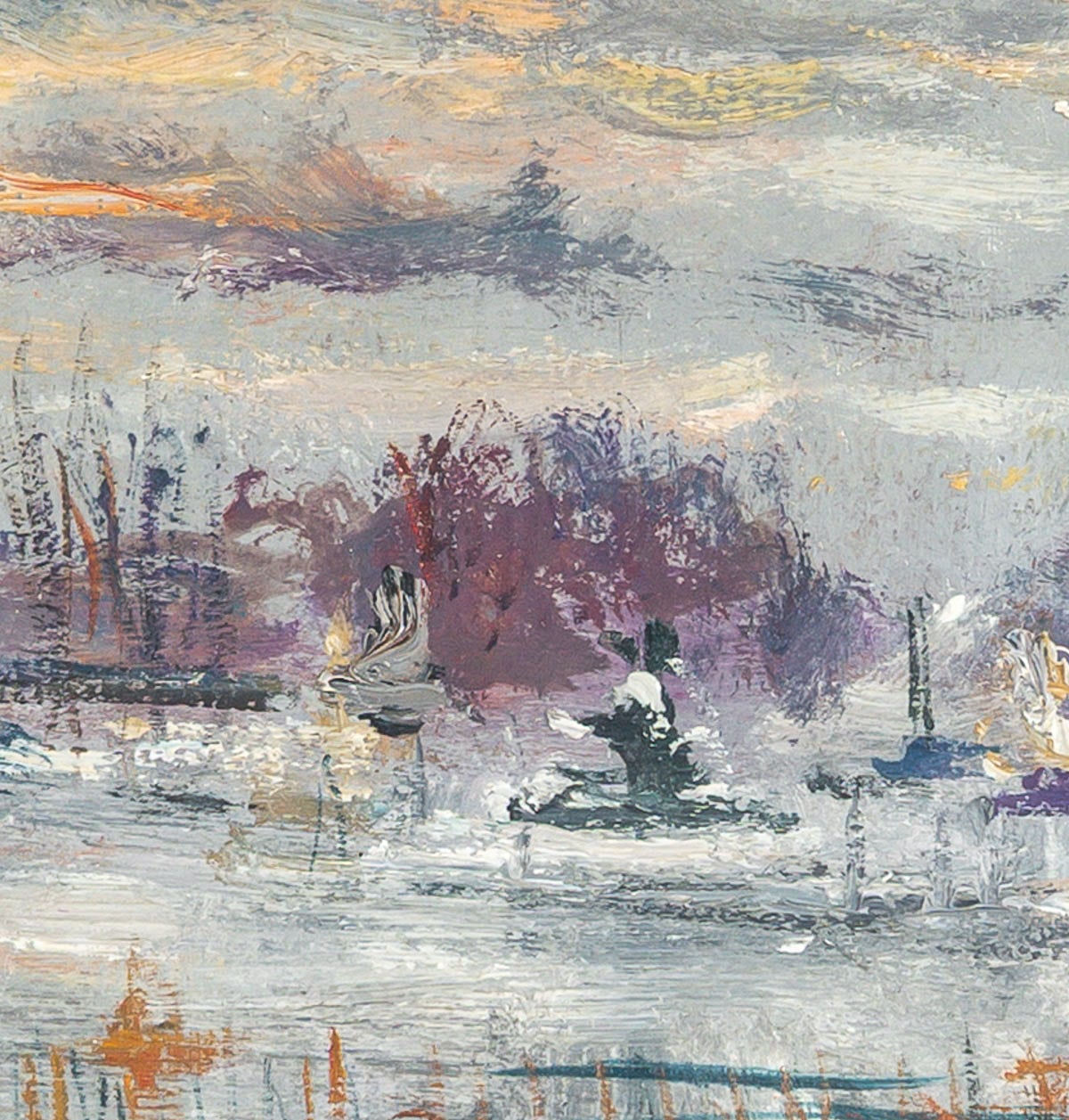This beautiful painting transports us to Paris, with its lovely view of The Place de la Concorde, from the Galliera Museum exhibition in 1973. Belloni loved spending autumn and early winter in Paris, where the bare trees revealed the architecture and authentic soul of the city. He spent the rest of the year in Venice, capturing its unique light.