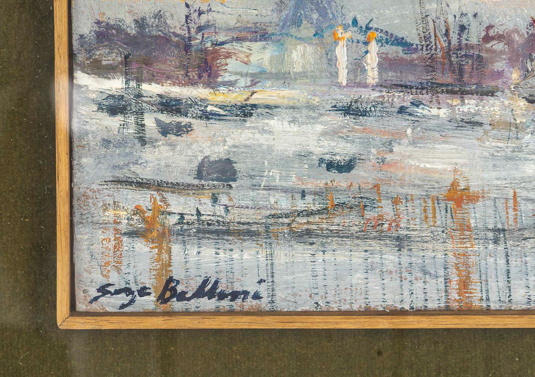 Ce beau tableau, nous transporte à Paris, avec cette superbe vue de la Place de la Concorde, provenant de l’exposition au Musée Galliera en 1973. Belloni affectionnait passer l’automne et le début de l’hiver à Paris, où les arbres dénudés révélaient l’architecture et l’âme authentique de la ville. Et le reste de l’année à Venise pour y capturer cette lumière si particulière.